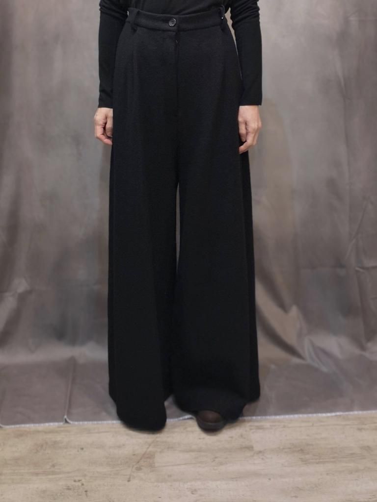 上品でカッコいい大人パンツです。ウエスト部分は背面のみのゴムでスッキリ魅せます。