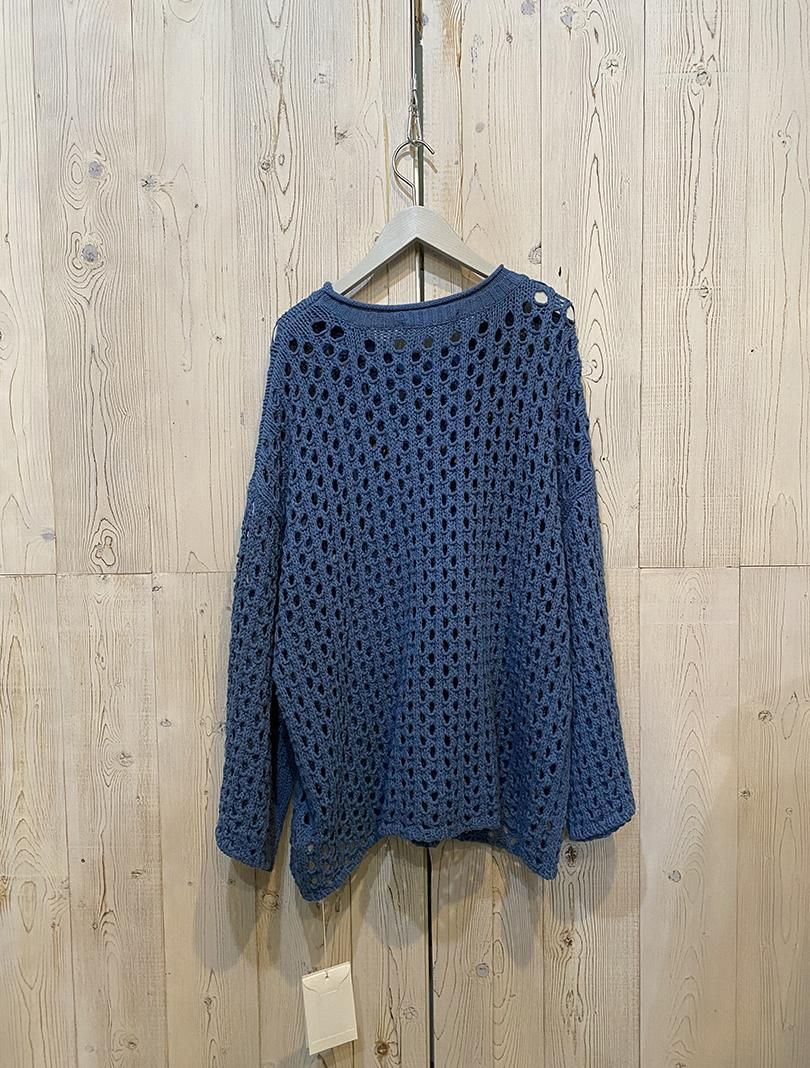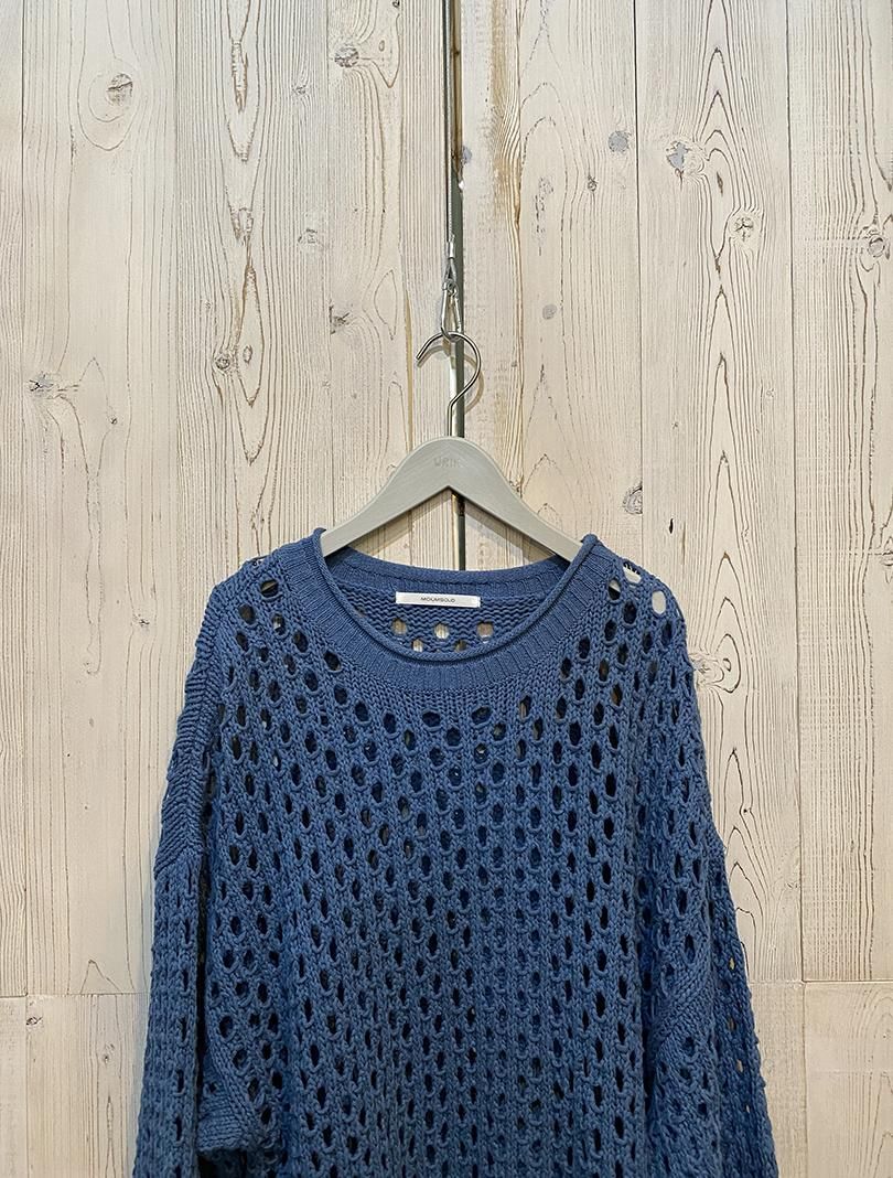 メッシュ状に大きくざっくり編まれたコットンニットプルオーバーです。透け感のあるサマーニット。アーム、身幅もゆとりあるインナーを覗かせ雰囲気あるコーディネートが出来ます。
