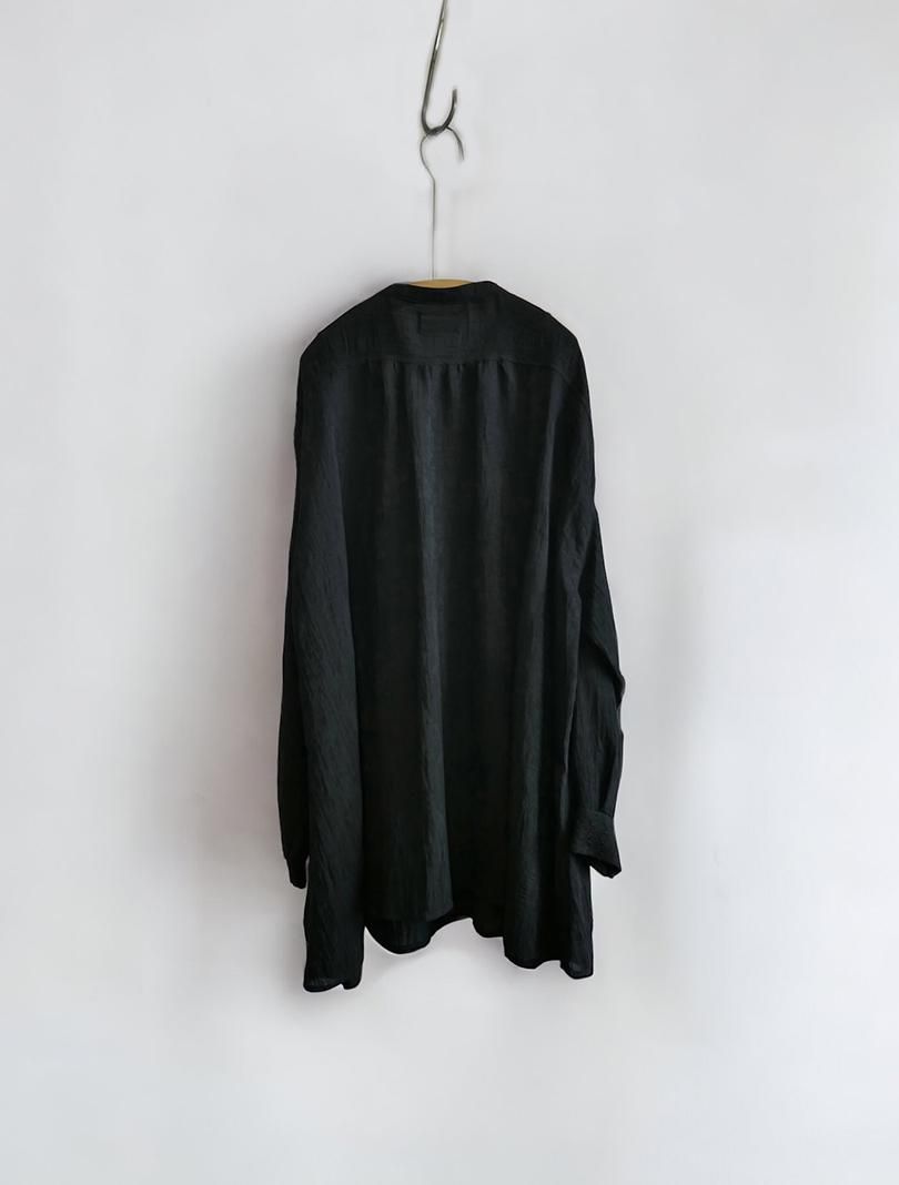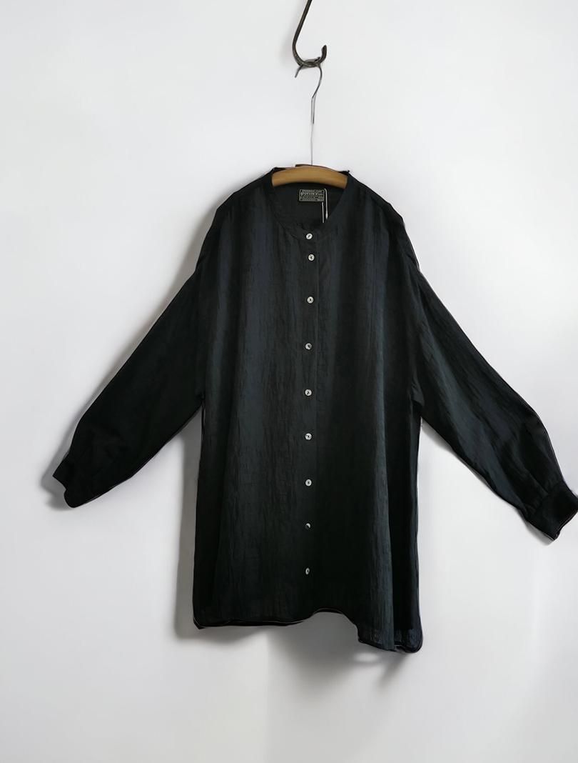 少しシャリ感があり柔らかで肌触りが良い、落ち感のあるジャガードブラウスです。再生繊維セルロースとナイロンを使用しており、織柄の美しさが特徴です。大人カッコいい雰囲気があり、1枚でも十分に魅力的で、羽織としても使えるので、カジュアルにもエレガントにもコーディネートできます。季節の変わり目などに重宝します。