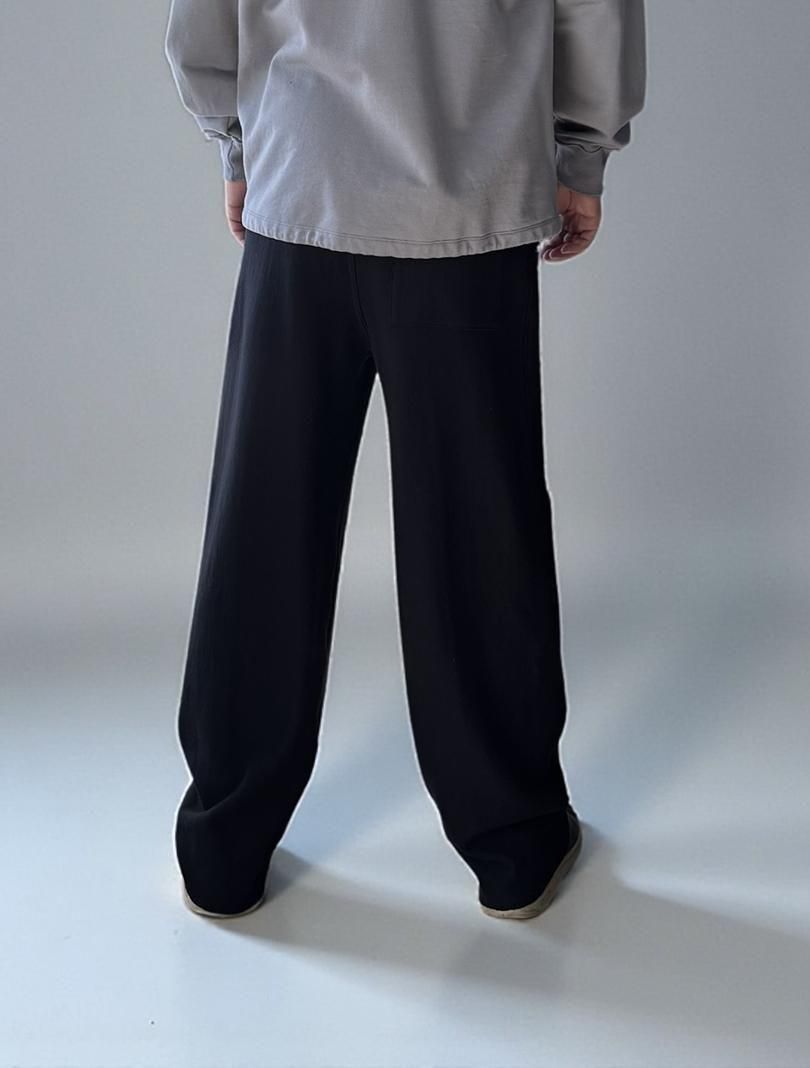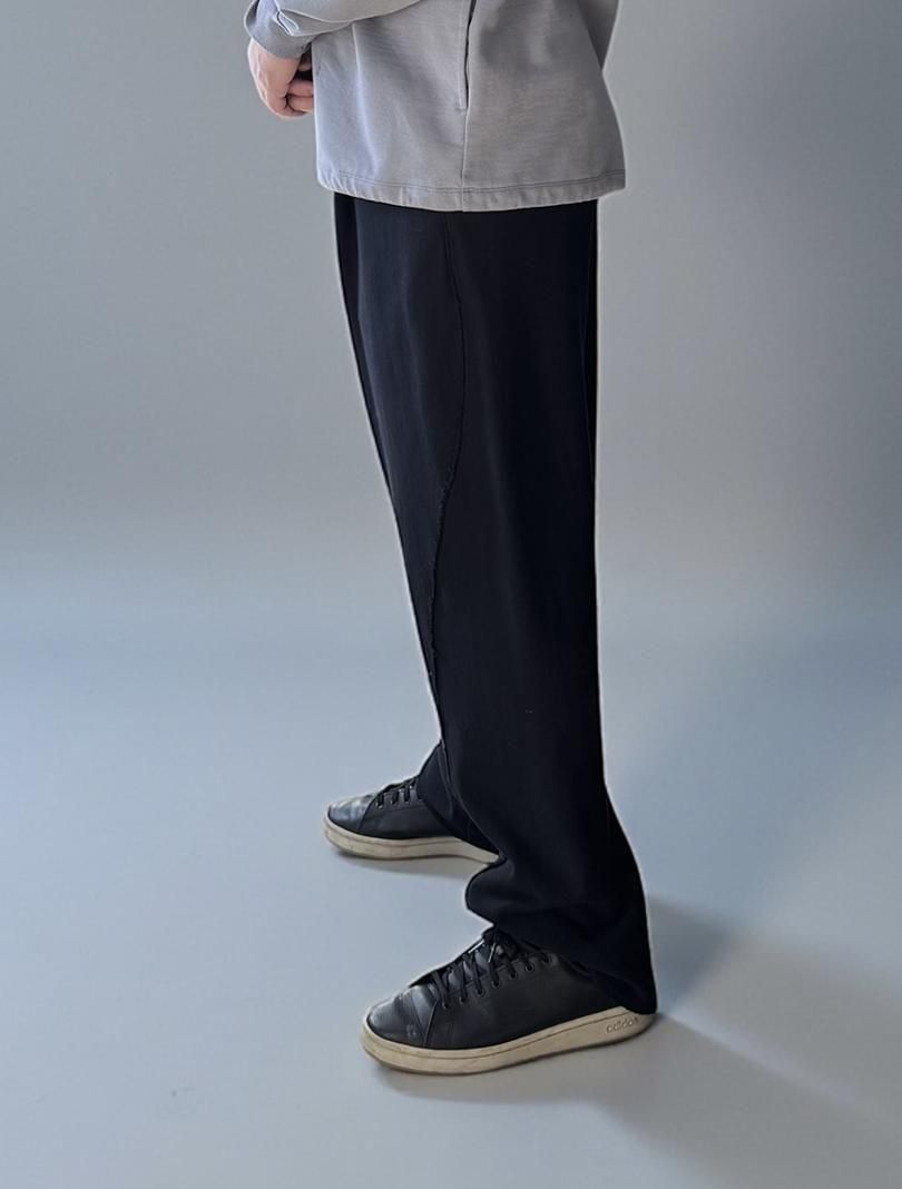 PERS PROJECTSよりローテンションスウェットのHAKEEM TWIST TROUSERSです。現在は生産されていない和歌山の旧式の編機で編まれた裏毛素材。旧式の編機は低速で編まれる為、空気を多く含みふくらみのある風合。空気を含んだ柔らかな着心地が特徴。 生地方向を通常と逆にとることで断ち切りの脇のシームが巻いてくるように作られている。 ゆとりのあるストレートシルエットが生地の柔らかさもあり、綺麗な落ち感が出るようになっている。