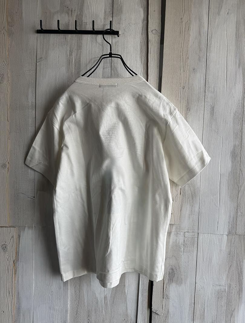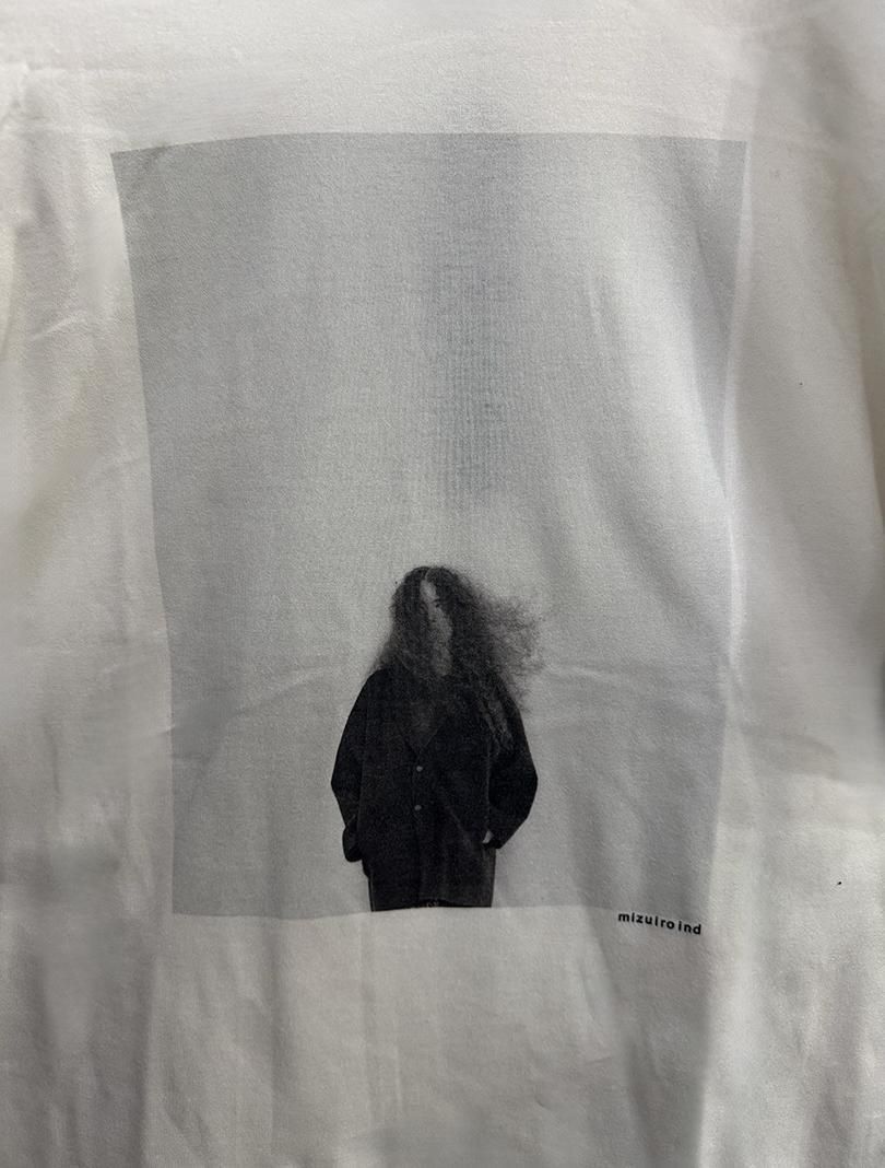 特殊な加工処理により、光沢感とソフトな風合いが特徴の40/2天竺を使用しており、一枚でもジャケットのインナーでも程よい存在感をお楽しみいただけます。写真はルックの画像からセレクトされております。コットン100パーセントでイージーケア、mizuiro indの世界観がプリントされていて、とても雰囲気あります。