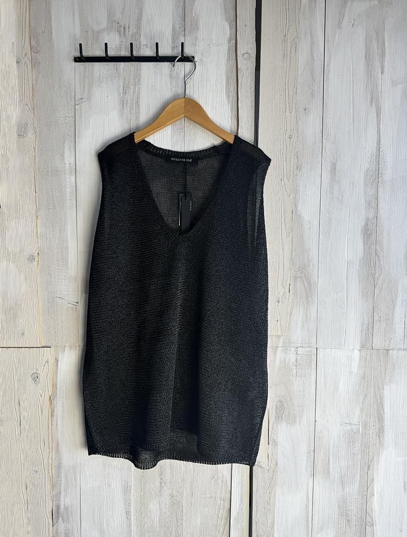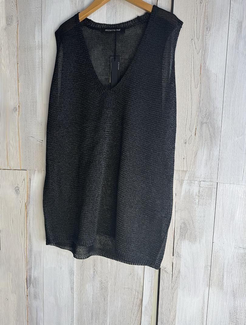 テープヤーンの編み方がリネンライクな雰囲気のワイドVネックベストです。通気性がよく春夏の重ね着におすすめの1枚。ヒップの隠れる丈とゆったりとしたサイズ感が◎です。ノースリーブで着こなしても雰囲気増しです。