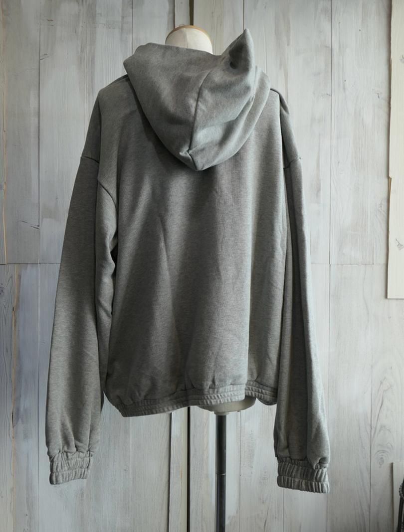 裏毛でありながらパイル状に編み込む事により、空気を多く含み程よい柔らかさとしっかりとした肉感を実現した素材。3D刺繍の上にグラデーションをプリントを施す事によりロゴを表現したスタイリングの幅が広がるプロダクト。