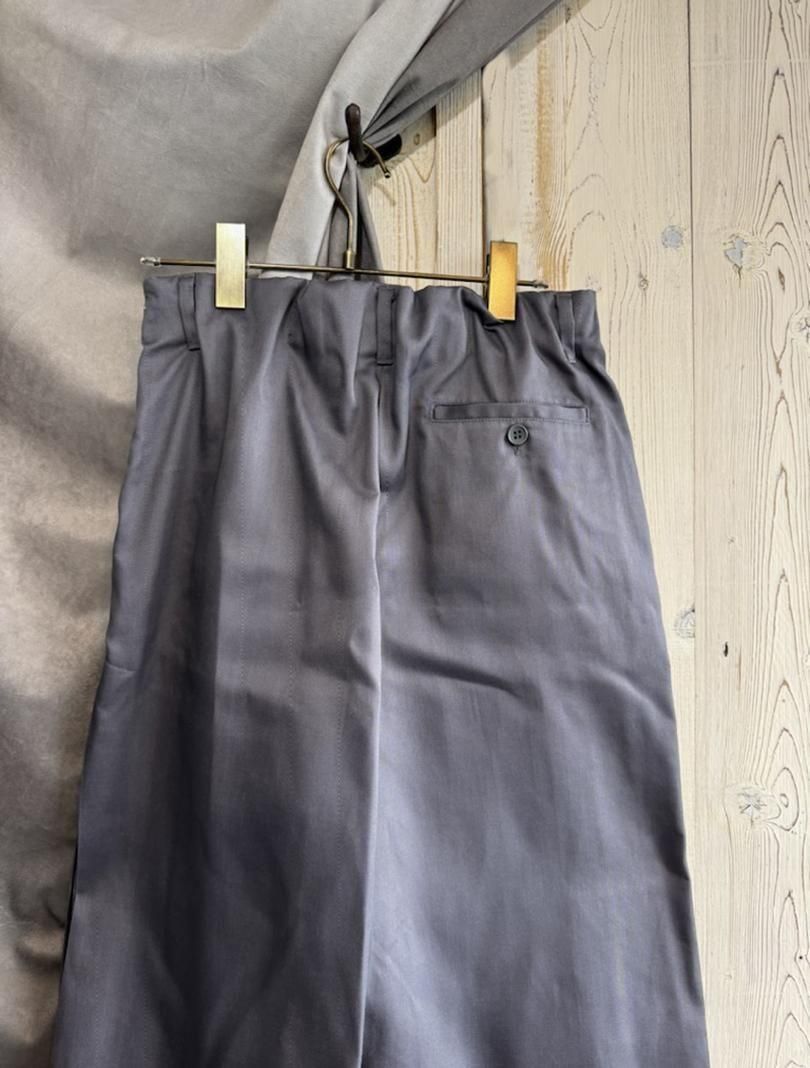 綿とポリエステルをプレンドしたチノ風の素材は、ナチュラルな風合いと適度なハリ感が待徴です。綿の柔らかさと通気性に、ポリエステルの軽さやシワになりにくさをプラスし、快適な着心地と扱いやすさを兼ね備えています。プリーツがかかるポリエステルの特性を活かし、フロント部分にプリーツ加工を施しています。